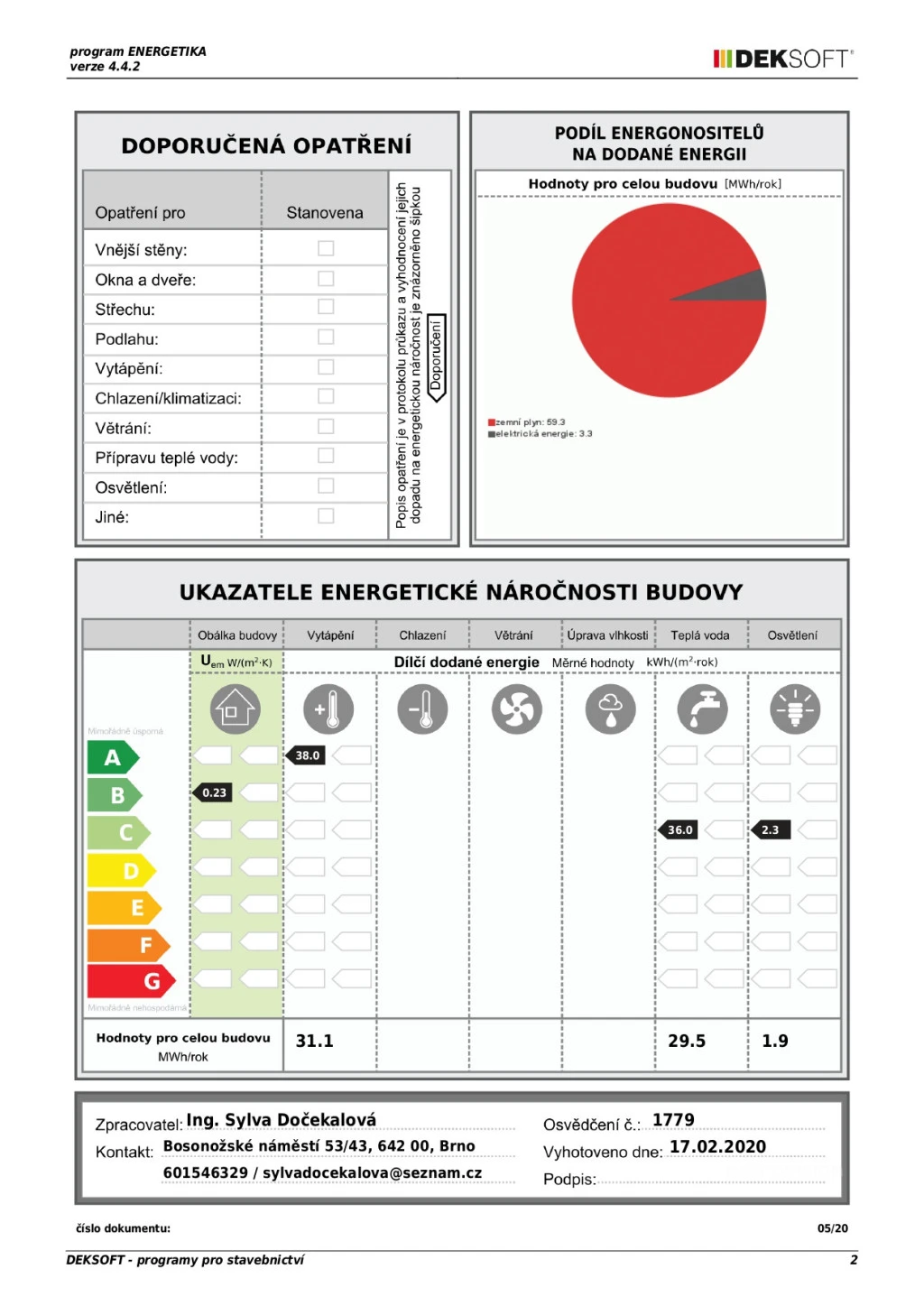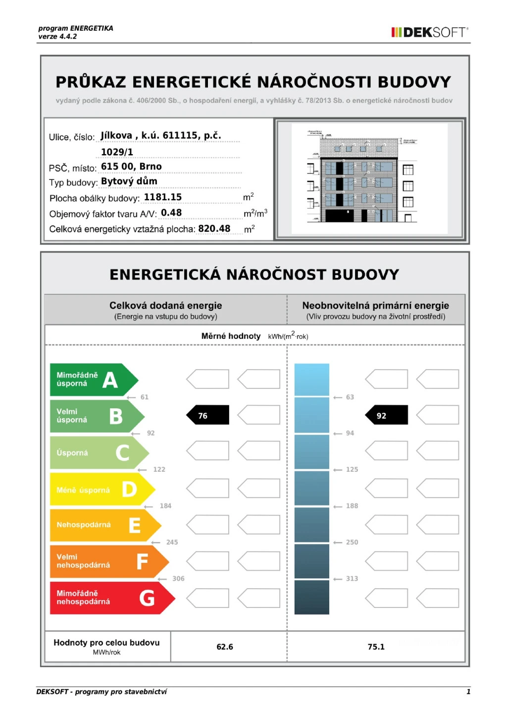 | Ukazatel energetické náročnosti | 751 kWh/m2 za rok |
