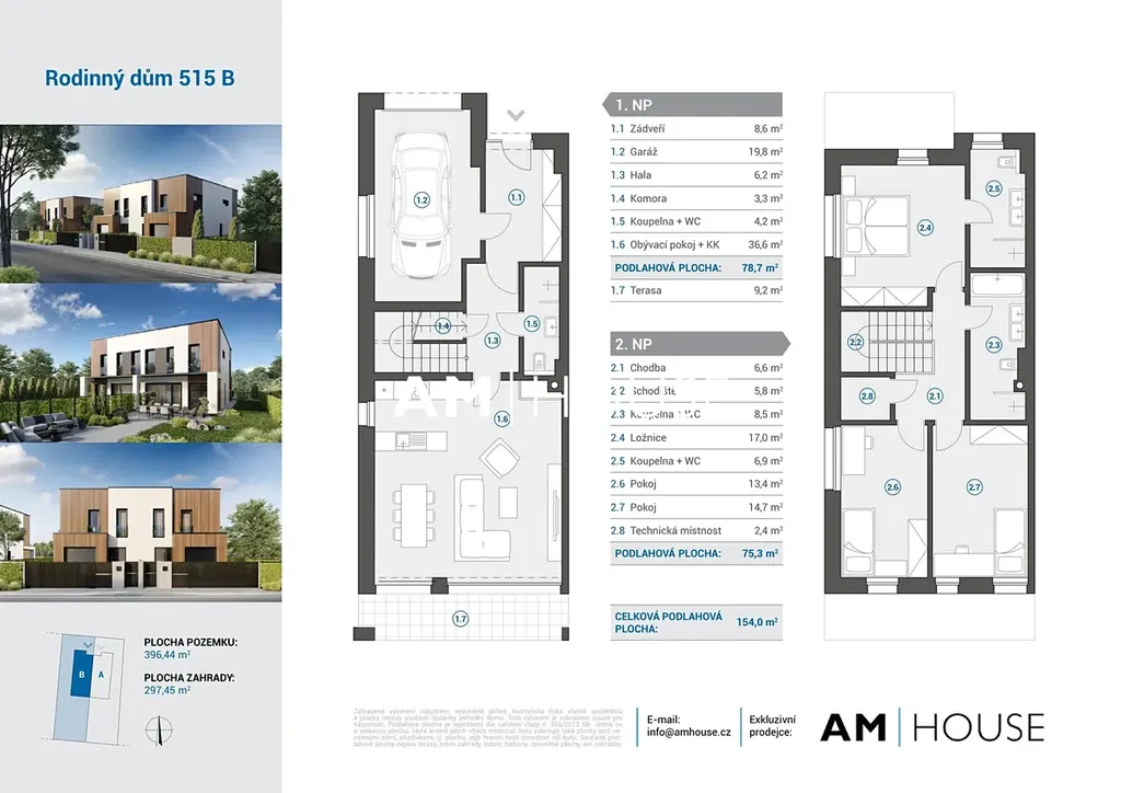 Společnost „Am House“ si dovoluje nabídnout k prodeji rodinný dům 4+kk o celkové ploše 153,5 m2, na unikátním pozemku 396 m2, který se nachází v Praha-Březiněves. Předmětem prodeje je polovina dvojdomu.