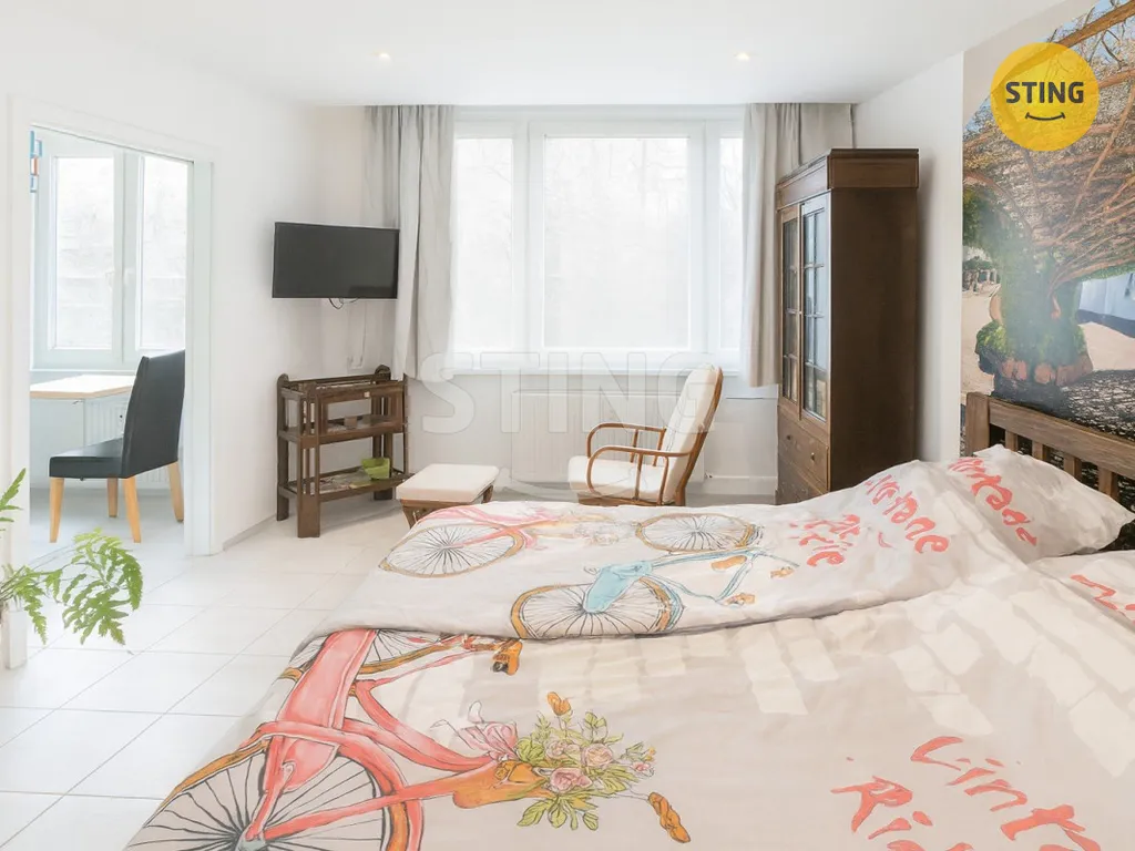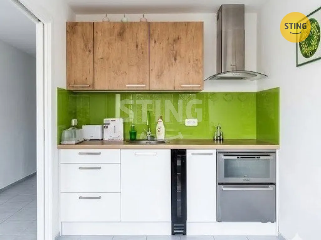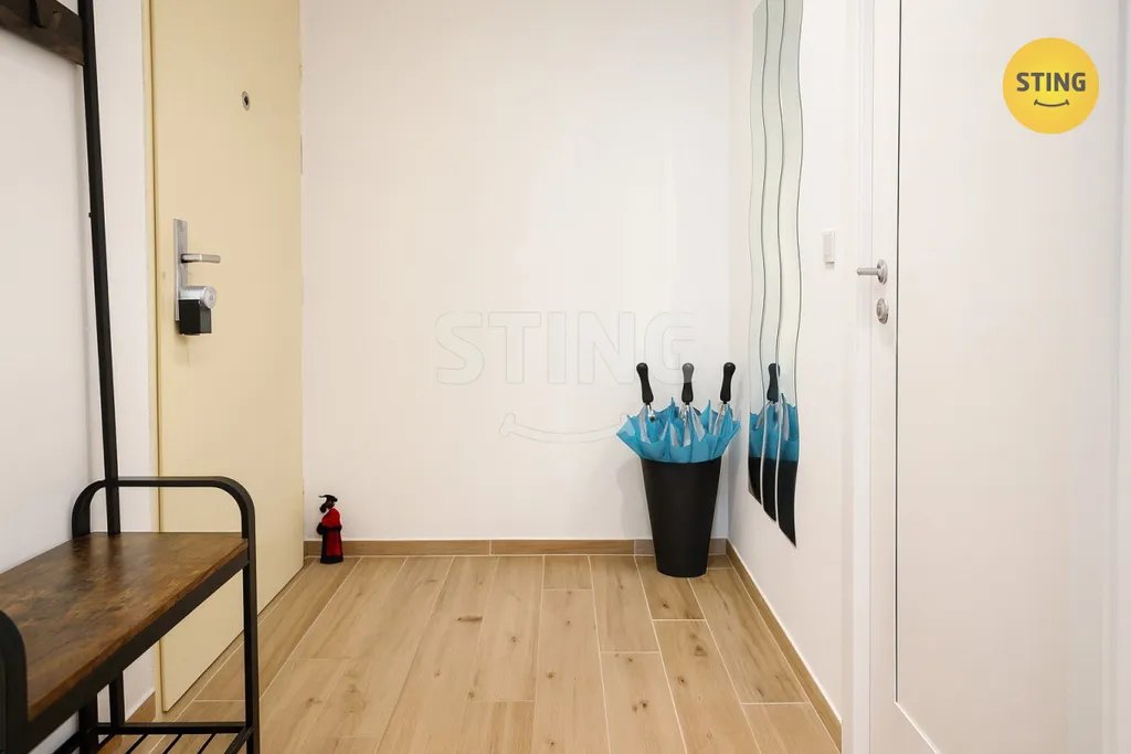 Byt je po kompletní rekonstrukci – nové rozvody, elektroinstalace, opravené zdivo, dlažba v celém bytě, nová kuchyňská linka s vestavěnými spotřebiči a renovovaná koupelna s WC.