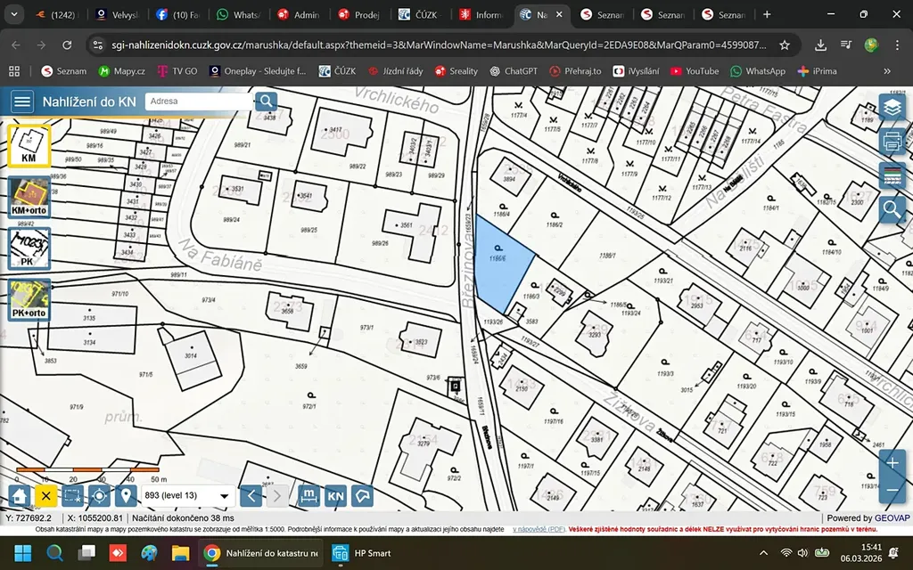 Pozemek má celkovou výměru 480 m2 a skládá se ze dvou parcelních čísel.