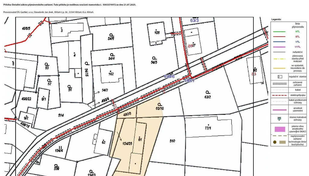 Elektřina, plyn a CETIN vede při bližší straně silnice.