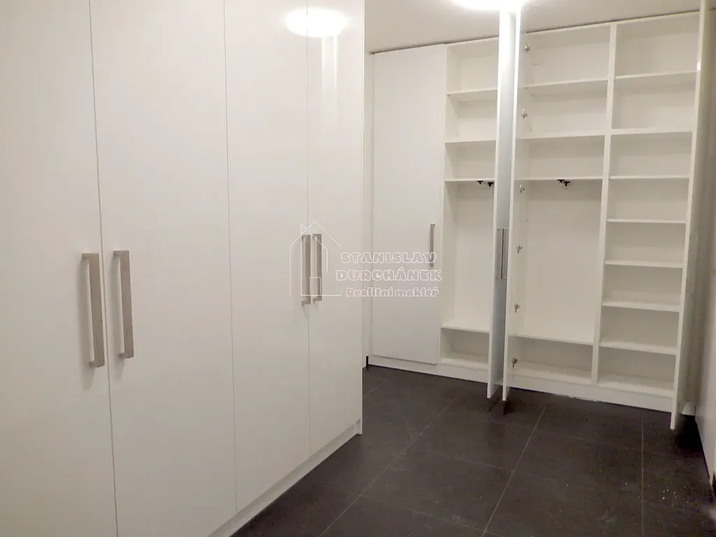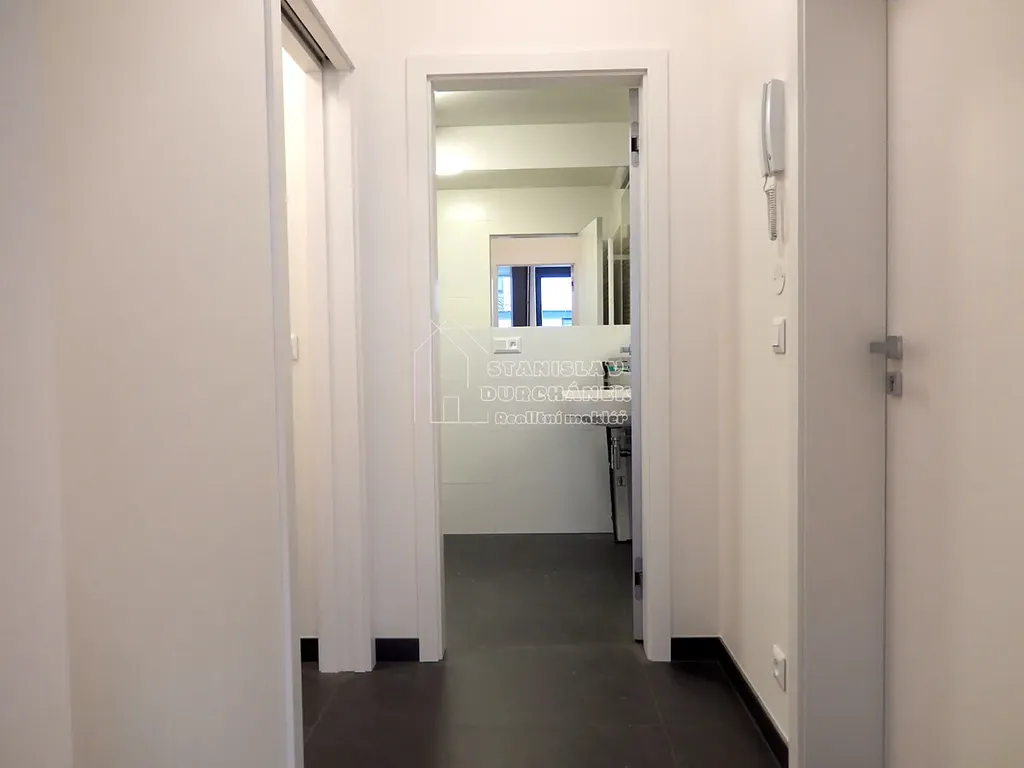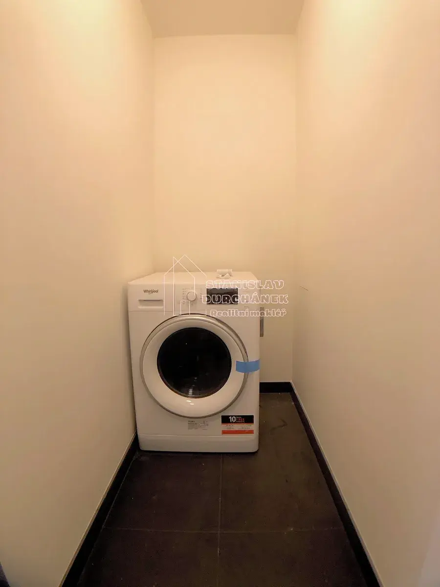 Byt bude pronajímán jako vybavený nábytkem i spotřebiči - velká skříňová stěna v obývacím pokoji, pohovka s úložným prostorem, sklopná dvojpostel (200 x 180 cm) se zdravotní matrací, stůl, židle, v kuchyni pak rohová kuchyňská linka včetně vestavěných spotřebičů (lednička, mrazák, myčka, indukční varná deska, digestoř, mikrovlnná trouba s funkcí grilu). V komoře je poté pračka se sušičkou (v jednom). Koupelna je se sprchovým koutem a WC.
