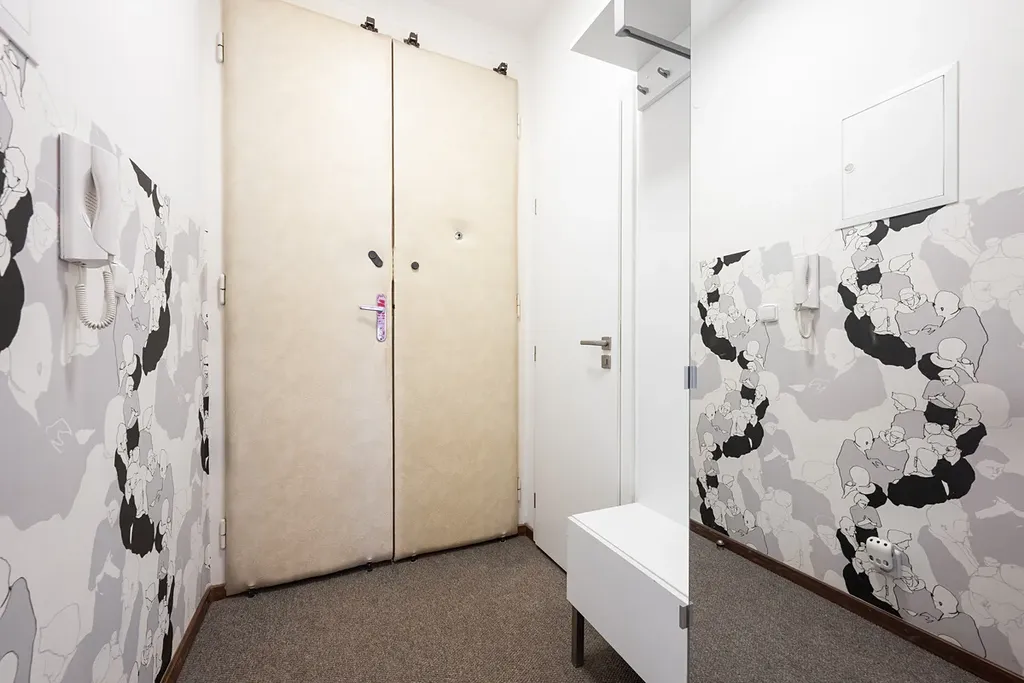 Interiér je doplněn o designové tapety Marimekko, moderní textilní rolety s teflonovou úpravou, venkovní rolety, bezpečnostní vstupní dveře.