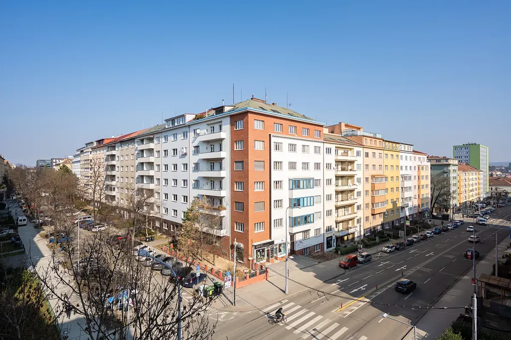 Prostorný obývací pokoj s výhledem do ulic Botanická a Kotlářská je dominantním pro tento byt. Je propojený s plně vybavenou kuchyní a jídelnou, dále je k dispozici koupelna se sprchovým koutem a oddělenou toaletou, 2 ložnice, (jedna s přímým vstupem do koupelny), samostatná toaleta, prostorná šatna. Z kuchyně s jídelnou je přes halu přístup na krytý balkon orientovaný do klidného vnitrobloku např. pro možnost grilování.