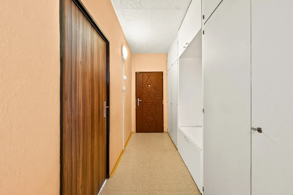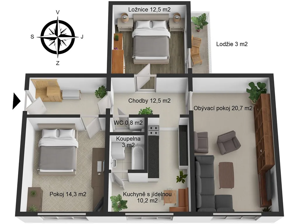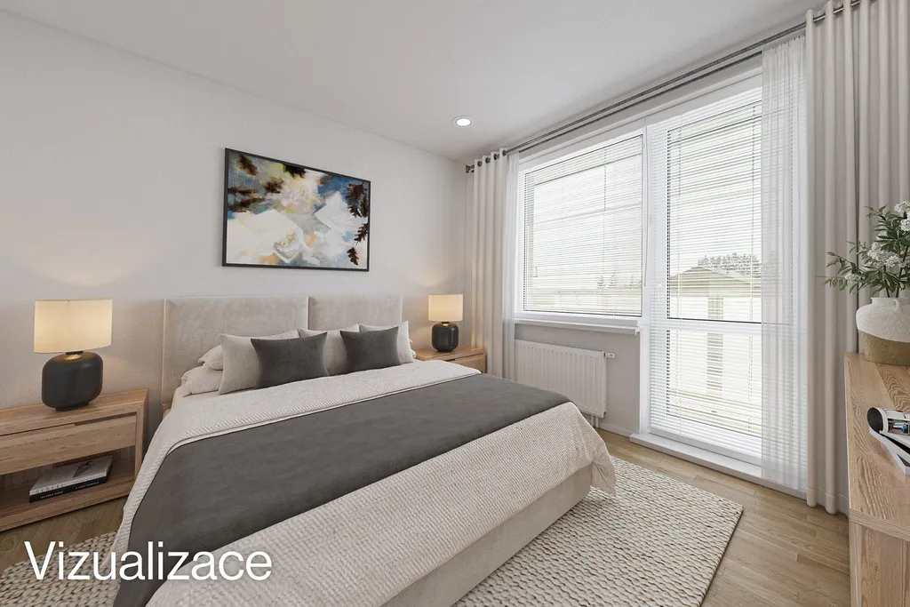Dispozice bytu je praktická a přehledná. Byt nabízí samostatnou ložnici, dětský pokoj a prostorný obývací pokoj, který poskytuje dostatek místa pro každodenní život i rodinné setkávání.