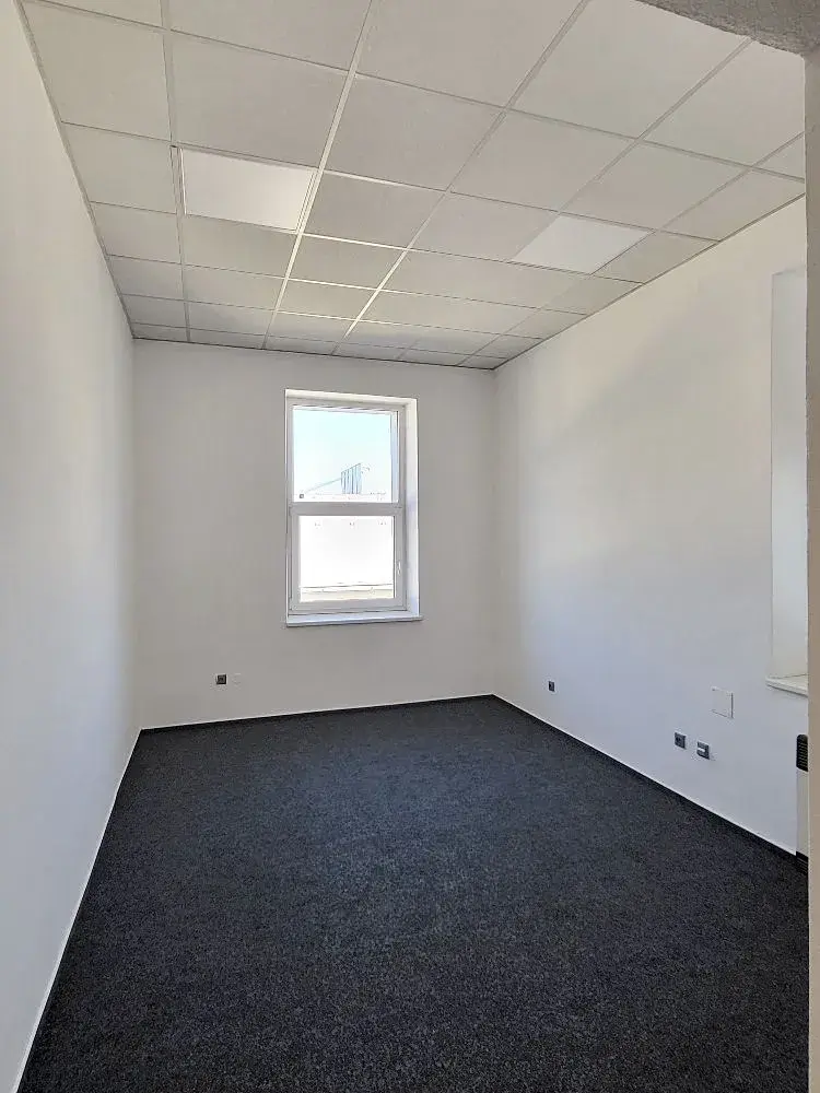 Prostory jsou vhodné pro administrativní činnost, drobný servis, výdejna e-shop apod. Prostory mají vstup přímo z chodby. Jsou vybaveny podhledy s osvětlením, sdílenou kuchyňkou a sdíleným sociálním zázemím na patře. Vytápění je realizováno lokálními plynovými topidly. Kancelář je nově vymalovaná na bílo a na podlaze je nový koberec. Je připravena pro nového nájemce.