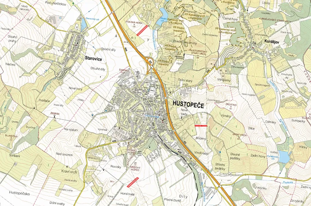 -> katastrální území Hustopeče u Brna, celková výměra 24 575 m2