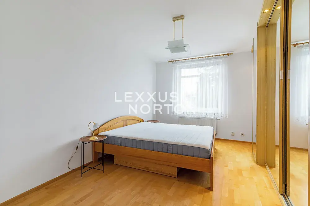 Ložnice o výměře 17 m² je orientována stejně jako ostatní okna na jihozápad, což zaručuje příjemné světlo po celý den. Z haly bytu je vstup do koupelny se sprchou, samostatné toalety a komory pro pračku.
