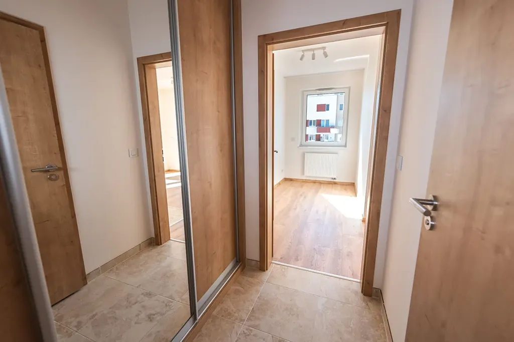 Byt je zařízený novou kuchyňskou linkou se elektrickou varnou deskou, troubou, lednicí a myčkou, v koupelně sprchový kout s WC. V předsíni vestavěná šatní skříň.