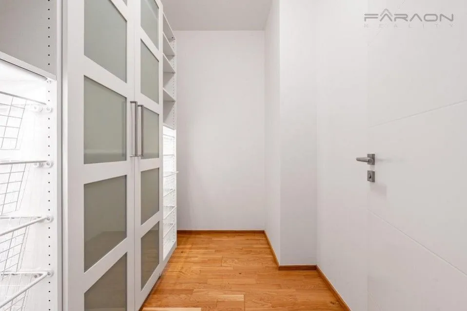 Byt nabízí krásný výhled do okolní zeleně a nachází se v klidném rezidenčním prostředí s výbornou dostupností do centra města, na letiště i do řady mezinárodních škol.