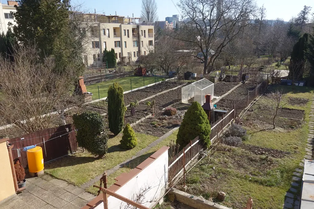 Obytné místnosti jsou samostatně přístupné a okna bytu jsou orientována na jižní stranu do klidné zahrady a do ulice Řádky.