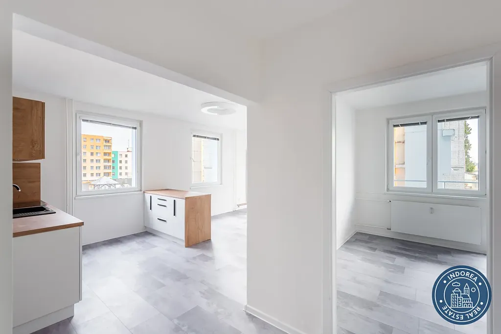Byt je po celkové a velmi zdařilé rekonstrukci. Interiér bytu tvoří obývací pokoj se zařízeným kuchyňským koutem, ložnice s balkonem, druhá ložnice, koupelna se sprchovým koutem, předsíň, samostatná toaleta. Okna jsou plastová s izolačním dvojsklem. Na podlahách skládaný vinyl a dlažba. Topení ústřední dálkové.