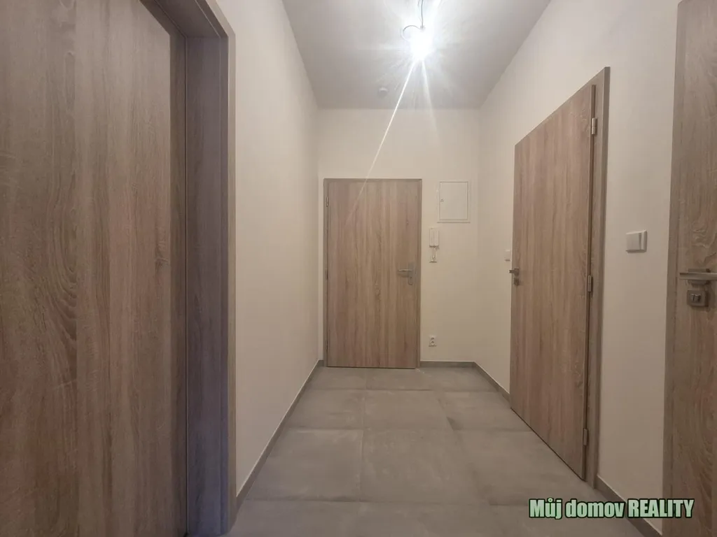 Byt nabízí praktickou dispozici: vstupní halu s kuchyňským koutem, obývací pokoj, samostatnou ložnici, koupelnu se sprchovým koutem a oddělené WC.