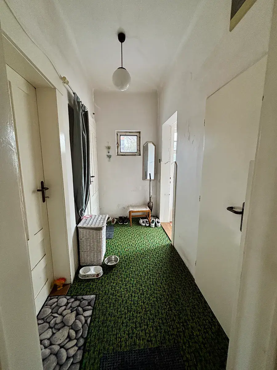Tato poctivá stavba cca z roku 1927 (kombinace kamene a cihly, dokončení stavby prosinec 1945) o zastavěné ploše 73m2 je ve velmi udržovaném původním technickém stavu s částečnou rekonstrukcí (před 25 lety nová střecha, některá dřevěná okna, kuch.linka, prosklená část v zádveří) a čeká na nového majitele, který využije její skrytý potenciál. Aktuální dispozici 2+1 lze rozšířit o další pokoje a koupelnu s WC v podkroví, čímž získáte velkorysé rodinné bydlení.