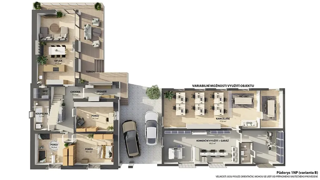Jedná se o vysoce variabilní nemovitost ideální pro náročné klienty hledající prostor pro rodinu i prosperující firmu pod jednou adresou. V případě dalších dotazů mě neváhejte kontaktovat. Těším se na shledanou s Vámi při prohlídce tohoto výjimečného domu.