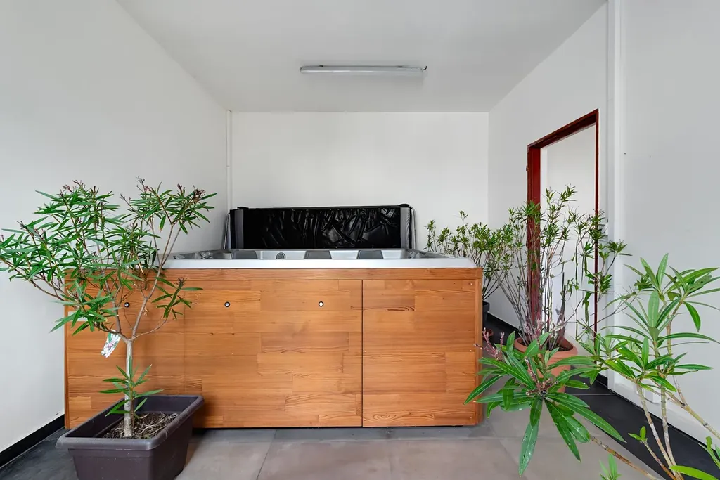 Vedlejší stavba (užitná plocha 146 m2) : Ideální místo pro skladové prostory, dílnu či technické zázemí, které navazuje na historickou tradici podnikání v tomto místě. Další možností využití je luxusní prostor pro relaxaci s dostatkem místa pro koníčky. Stavba disponuje vlastním sociálním zázemím a špičkovou vířivkou USSPA.