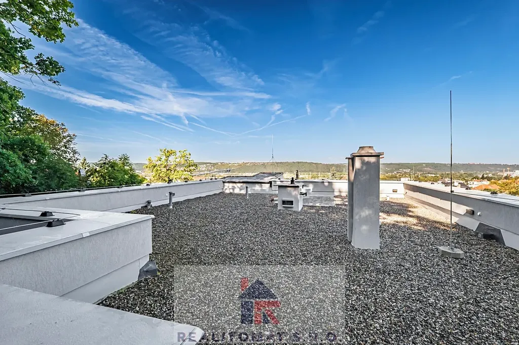 Na střeše rezidence jsou připravené terasy pro instalaci vířivek a saun. V zadní části domu je zastřešená pergola s přípravou na kuchyňskou linku.