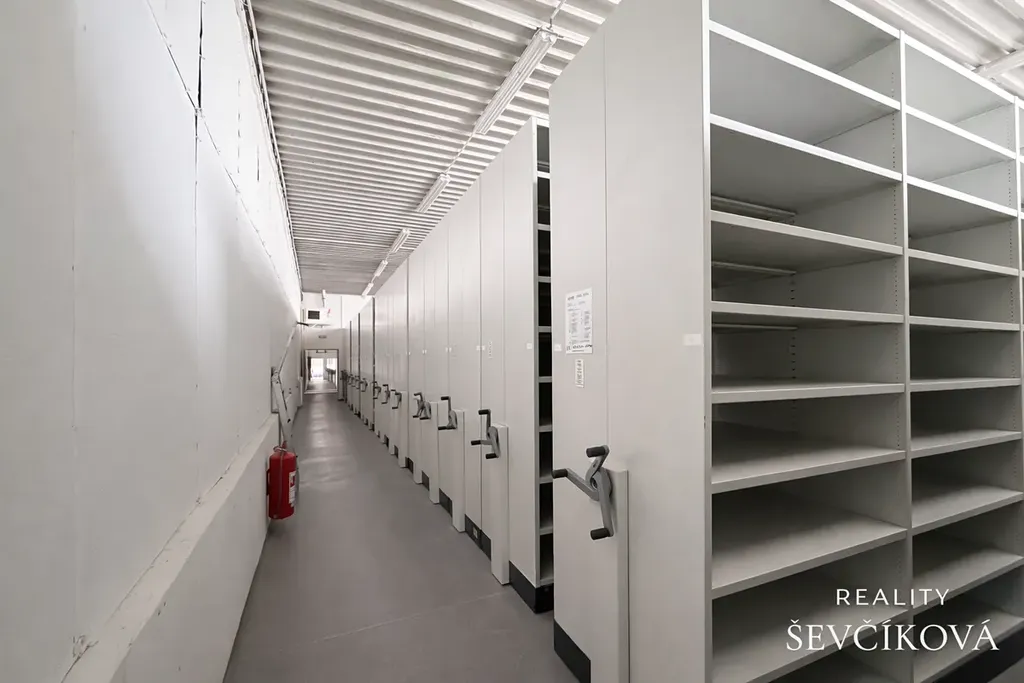 Prostory jsou vytápěné (administrativa + přední část archivu) a součástí pronájmu je kompletní pevně instalovaná regálová technologie Dexion, určená výhradně pro profesionální archivaci dokumentů.