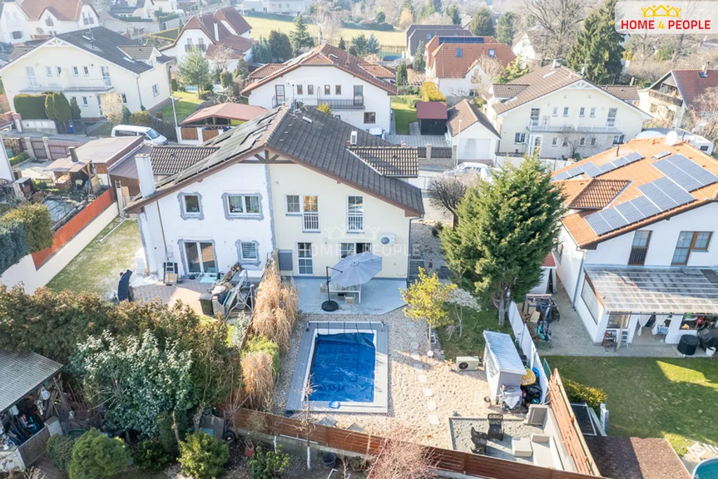 Zahrada o velikosti 300 m² nabízí soukromí i místo pro relaxaci u bazénu (5x3 m od firmy Albixon z roku 2024) a venkovní posezení na terase (20 m²). Parkování před domem pro 3 auta.