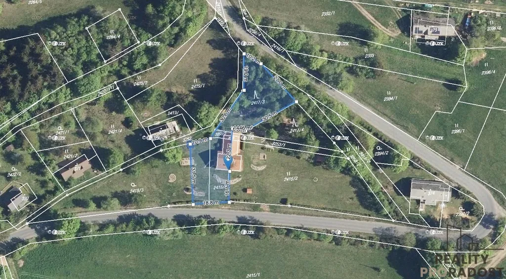 K nemovitosti náleží pozemek o celkové výměře 1 440 m², který nabízí dostatek prostoru pro parkování více automobilů i další využití pro rekreaci.