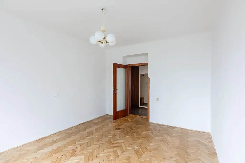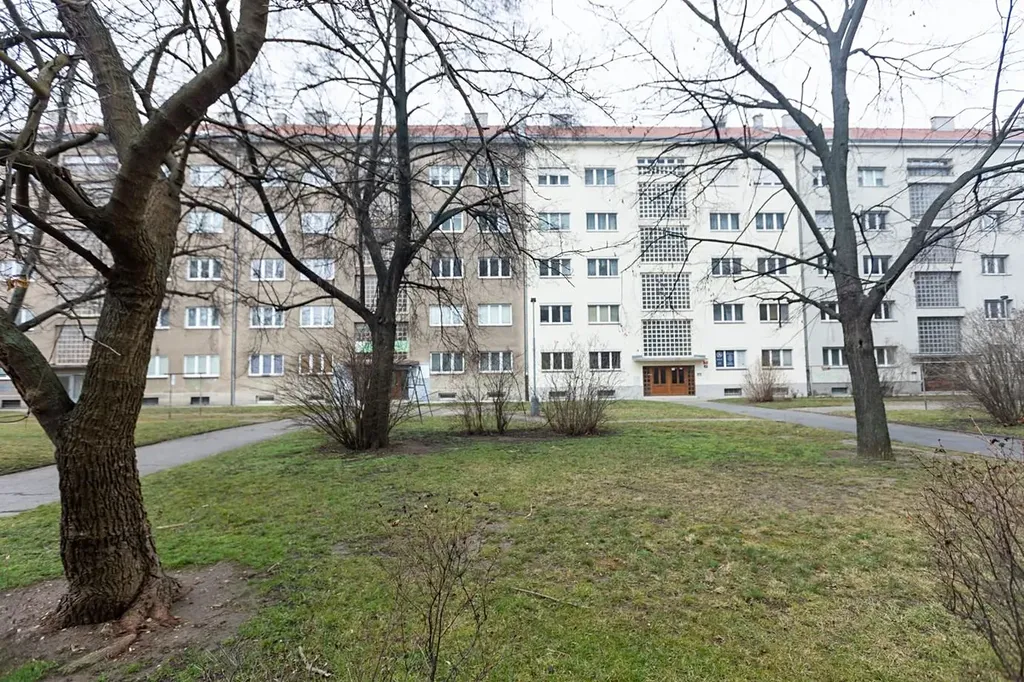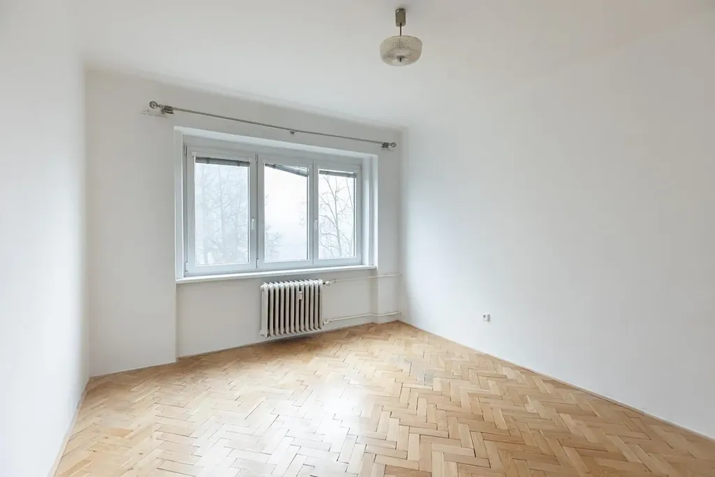 Byt disponuje velkým obývacím pokojem, dvěma ložnicemi, kuchyní, koupelnou, samostatnou toaletou a prostornou předsíní s velkými vestavěnými skříněmi. Velká okna zajišťují dostatek denního světla a z bytu je příjemný výhled do zeleně. Na podlahách jsou zachovalé dřevěné parkety, které dodávají interiéru příjemnou atmosféru. Kuchyň v udržovaném původním stavu, k dispozici špajz pro skladování potravin i lednice s mrazákem. Pračka je součástí vybavení bytu.
