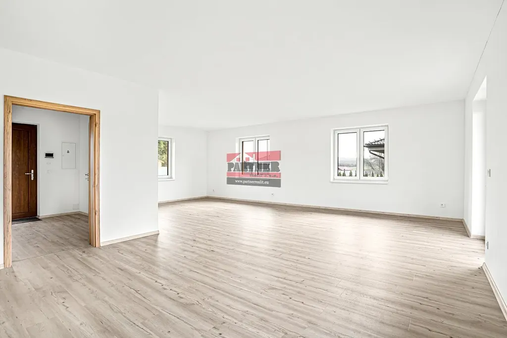 Dům nabízí celkovou plochu 138,08 m². Dispozice je prakticky řešená: prostorné zádveří (8,91 m²), světlý obývací pokoj s kuchyňským koutem (47,98 m²) a přímým vstupem na terasu, tři samostatné pokoje (11,71 m², 11,71 m² a 13,2 m²), praktická chodba (7,97 m²) s druhým vstupem do domu, koupelna se sprchovým koutem (7,31 m²) a samostatná toaleta (2,17 m²). Kvalitní vinylové podlahy podtrhují moderní a příjemnou atmosféru interiéru. Součástí domu je také přístřešek o velikosti 27,09 m² a zahradní domek o výměře 19 m². Celý pozemek o rozloze 1 332 m² je kompletně oplocený a opatřený elektrickou vjezdovou bránou.