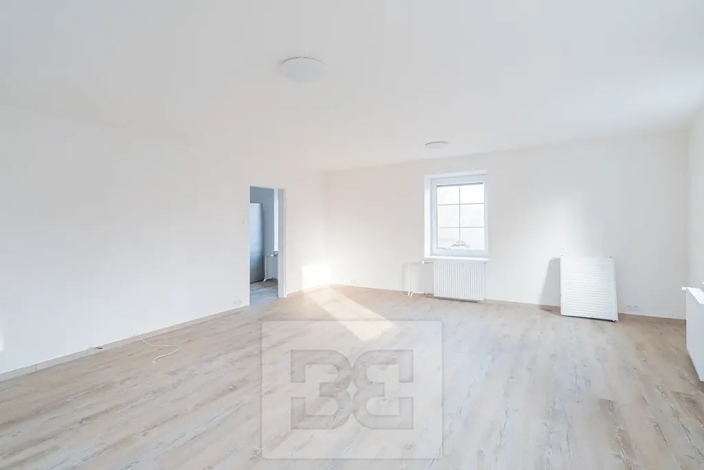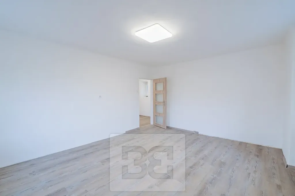 Byt prošel rekonstrukcí, Dispozici tvoří obývací pokoj s kuchyní a dvě samostatné pokoje.