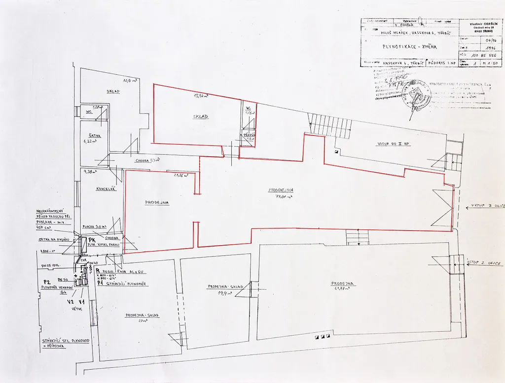 Pronajmu obchodní prostory v centru Třebíče, ulice Hasskova, vedle Městské knihovny. Přízemí, nyní se zde nachází makléři pojišťovny. Samotný obchod má 100 m², sklad 15 m², sociální zařízení 2 m². Topení společné se sousedním obchodem- UT plynový kotel. Krásné prostory s klenbami. Volné dohodou od 1.4.2026. Nájemné 14.000,- Kč měsíčně + energie.