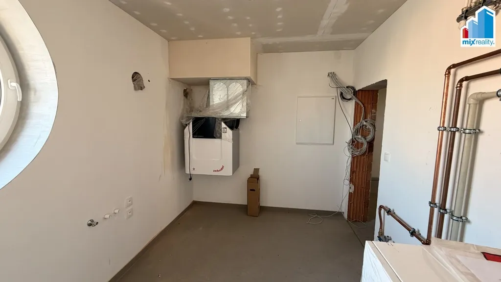 Nemovitost je dokončena do fáze, která umožňuje novým majitelům dokončit interiér podle vlastních představ – zejména podlahové krytiny, obložky a interiérové dveře.