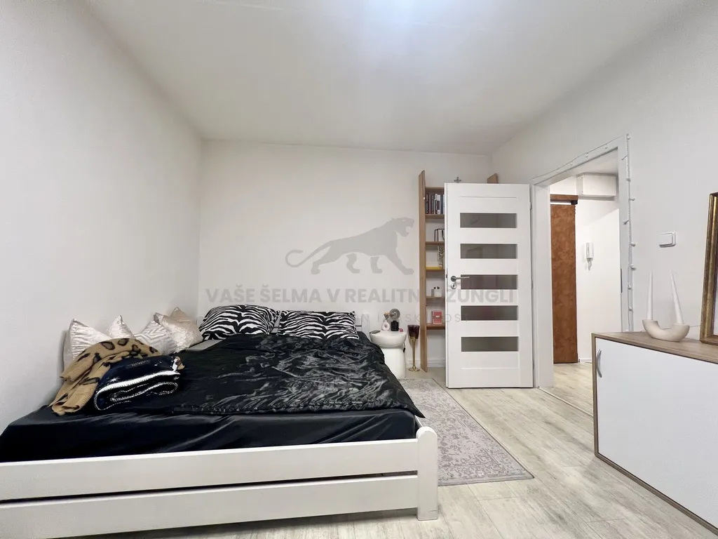 - Příjemný obývací prostor s postelí, skříní