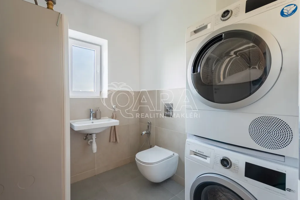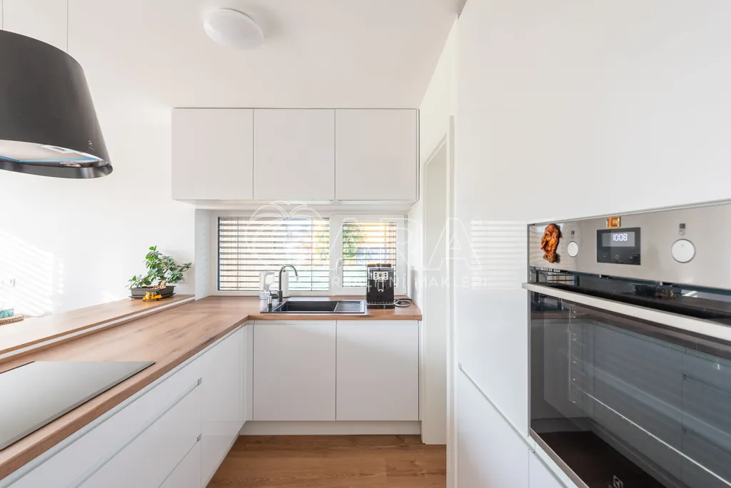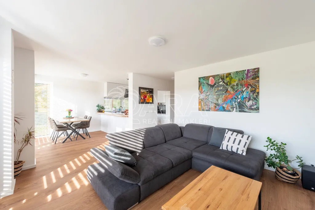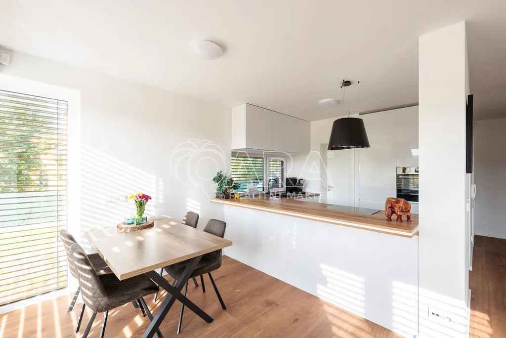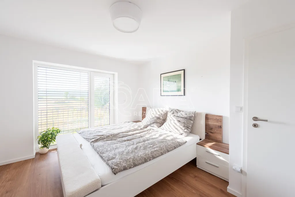 Nabízím k prodeji novostavbu rodinného domu 5+kk (polovinu dvojdomu) z roku 2022. Jedná se o kvalitní zateplenou zděnou stavbu s podlahovým vytápěním napojeným na tepelné čerpadlo (voda-vzduch). Dům je umístěn v klidné okrajové části obce. Na pozemku se nachází zastřešené parkovací stání s navazujícím zahradním domkem o velikosti 5,5 m2.