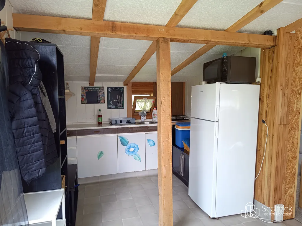 Vybavená chata s klimatizací – kuchyňský kout s vařičem, lednicí a mikrovlnnou troubou