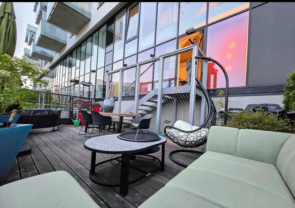 Interiér bytu je zařízen ve vysokém standardu. Součástí je luxusní kuchyňská linka s vestavěnými spotřebiči značky AEG (horkovzdušná trouba, indukční varná deska, mikrovlnná trouba, myčka nádobí a další). Byt se prodává kompletně vybavený – včetně nábytku, velkoformátové televize, pračky, sušičky, klimatizace a venkovního zahradního nábytku s vířivkou na terase.
