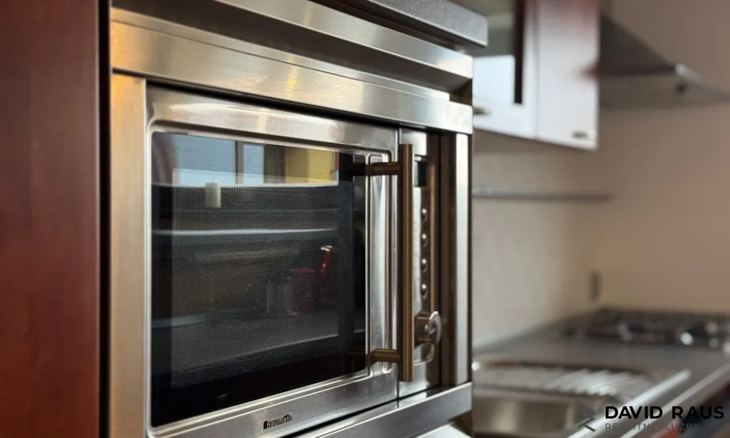 Po vstupu do bytu se ocitnete v příjemném, světlém prostoru s kuchyňskou linkou, obývací a spací částí. Kuchyň je plně vybavená – nechybí lednice, myčka, trouba ani mikrovlnná trouba. Na kuchyň navazuje obývací část s jídelním stolem, televizí, konferenčním stolkem a velkou šatní skříní se zrcadlem. Spací zóna je částečně oddělena dřevěnými trámy, které zároveň dotvářejí jedinečnou atmosféru interiéru. Nachází se zde nová manželská postel s roštem a matrací a dostatek úložného prostoru díky vestavěným skříním. Koupelna je vybavena sprchovým koutem, toaletou a pračkou. V bytě je bojler na ohřev vody. Podlahy tvoří kombinace dlažby a koberce v teplých hnědých tónech, celý byt je nově vymalovaný na bílo. Součástí pronájmu je i kompletní vybavení – ručníky, župan a kvalitní sušák na prádlo, takže se můžete ihned nastěhovat a bydlet bez nutnosti dalších investic.