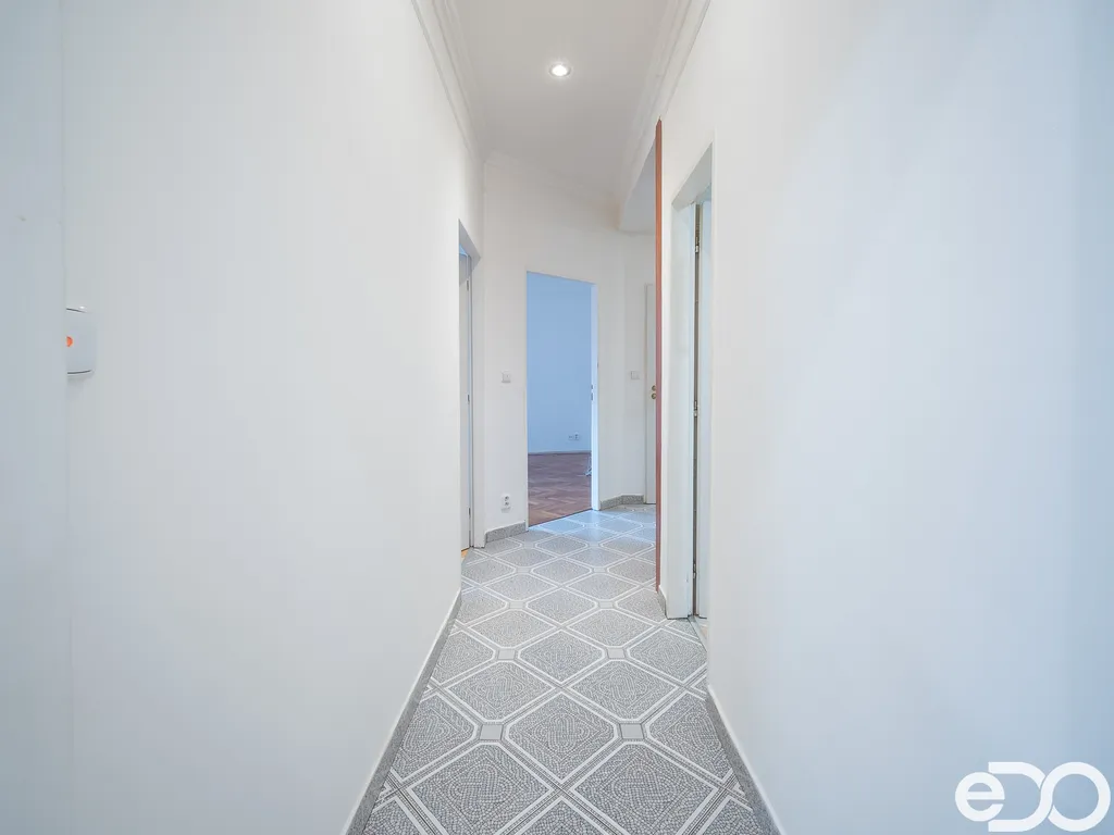 Součástí bytu je také sklepní kóje v suterénu domu, která poskytuje praktický prostor pro uložení sezónních věcí nebo sportovního vybavení.