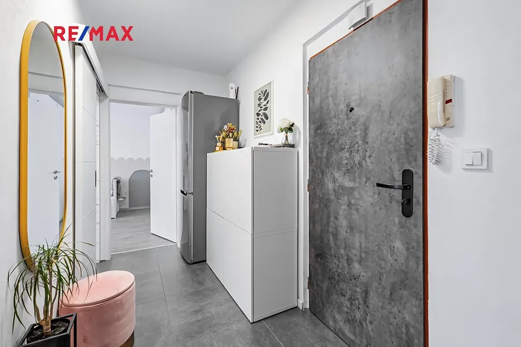 Byt se nachází ve třetím patře bytového domu bez výtahu, o jehož zabudování se právě jedná v rámci SVJ. Dům je zateplený a má nová plastová okna. Byt jako takový rovněž prošel rekonstrukcí, takže Vám dodá na pocitu útulného bydlení ve svěžím slunném domově. Jeho dispozice je velice praktická, jelikož obývací pokoj a ložnice jsou od sebe umístěny na opačných stranách bytu, což Vám zaručí klidné a pohodové spaní pro případ, že by někdo další dále aktivně využíval obývací pokoj. Byt je tak vhodný pro jednotlivce náročnějšího na prostory, dále pro pár, který hodlá započít novou životní kapitolu, nebo třeba i pro začínající rodinu o třech osobách.