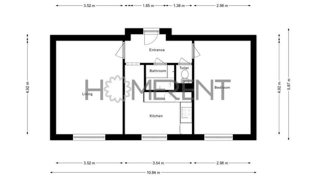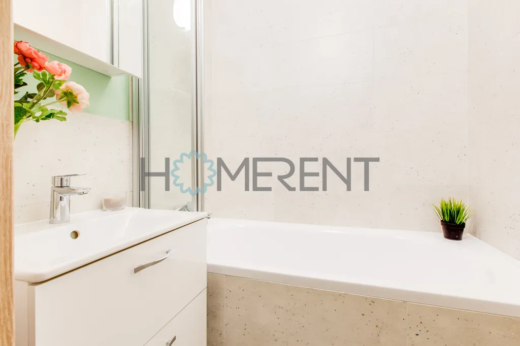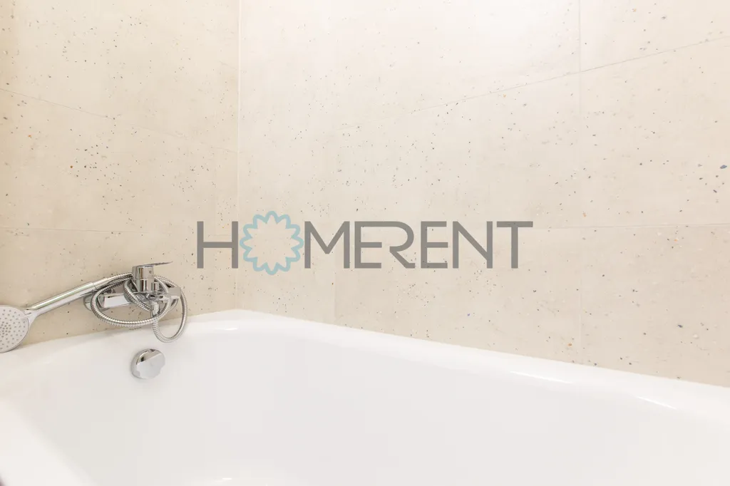 Samotný byt prošel kompletní rekonstrukcí. Jsou zde nové podlahy, nová kuchyňská linka a celkově je byt ve velmi dobrém technickém stavu. Byt je pronajímán jako nevybavený, což novým nájemníkům umožňuje zařídit si interiér podle vlastních představ. Součástí bytu je však moderní kuchyňská linka vybavená spotřebiči – k dispozici je lednice s mrazákem, myčka nádobí, digestoř a také pračka se sušičkou. Kuchyň tak nabízí plnohodnotné zázemí pro každodenní vaření i pohodlný chod domácnosti.
