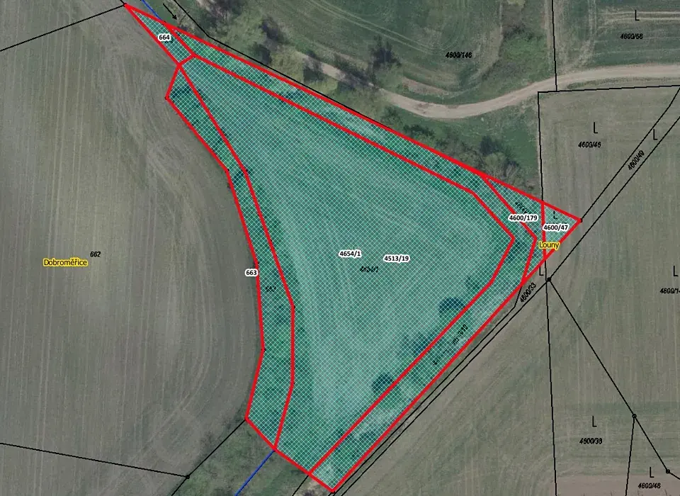 Exklusivně nabízíme k prodeji soubor pozemků na rozhraní dvou katastrů. P.č. 4513/19, 4600/179, 4600/47 a 4654/1 v k.ú. Louny, vedené na LV 1691 a p.č. 663 a 664 vedené v k.ú. Dobroměřice vedené na LV 708 o celkové výměře 8 229 m2. Pozemky jsou ve výlučném vlastnictví (1/1) a jsou řádně obhospodařovány místním zemědělcem. Na pozemcích je možné hospodařit, případně je v budoucnu směnit se Státním pozemkovým úřadem (SPÚ). V případě jakýchkoliv dotazů nás neváhejte kontaktovatSouřadnice: 50.3711025N, 13.8037122E