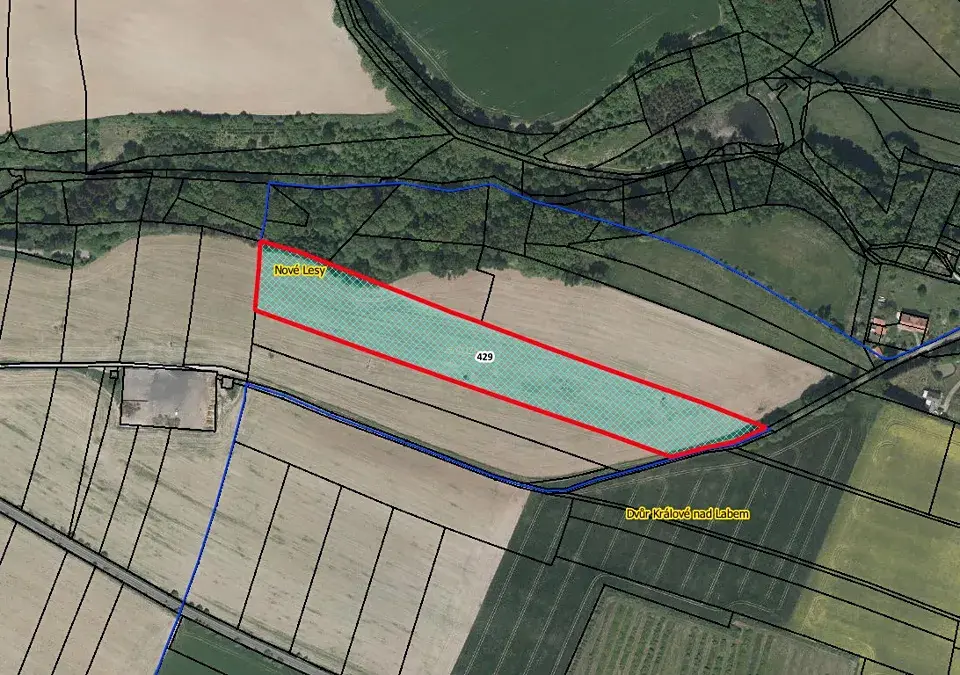 Nabízíme k prodeji krásný pozemek ve 100% vlastnictví o velikosti 23018m v katastrálním území Nové Lesy. Pozemek se nachází poblíž Dvora Králové a je v současné době obhospodařován na základě platné pachtovní smlouvy místním zemědělským podnikem. Parcela je skvěle přístupná z cesty. V této lokalitě se jedná o velice zajímavou nabídku vzhledem k velikosti pozemku.