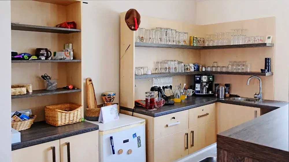 - 5 samostatných apartmánů (á 3 osobách), vlastní koupelna a WC, recepce, společná jídelna, kuchyně s posezením, technické zázemí, prádelna, v této části je topení - radiátory