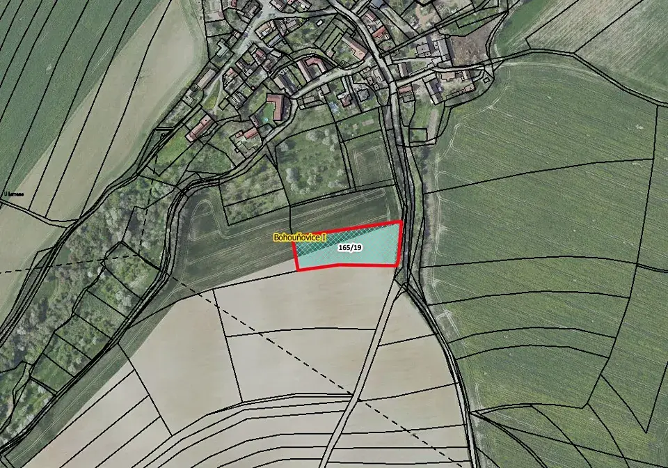 Nabízíme k prodeji pozemek p.č. 165/19 o celkové výměře 4 357 m2 v k.ú. Bohouňovice I, vedený na LV 1215. Pozemek je řádně obhospodařován místním zemědělcem, který dodržuje osevní postupy. Smlouva je uzavřena na dobu neurčitou s výpovědní lhůtou 1 rok. Pozemek je tedy vhodný k vlastnímu hospodaření jako zahrada, popřípadě směnu.