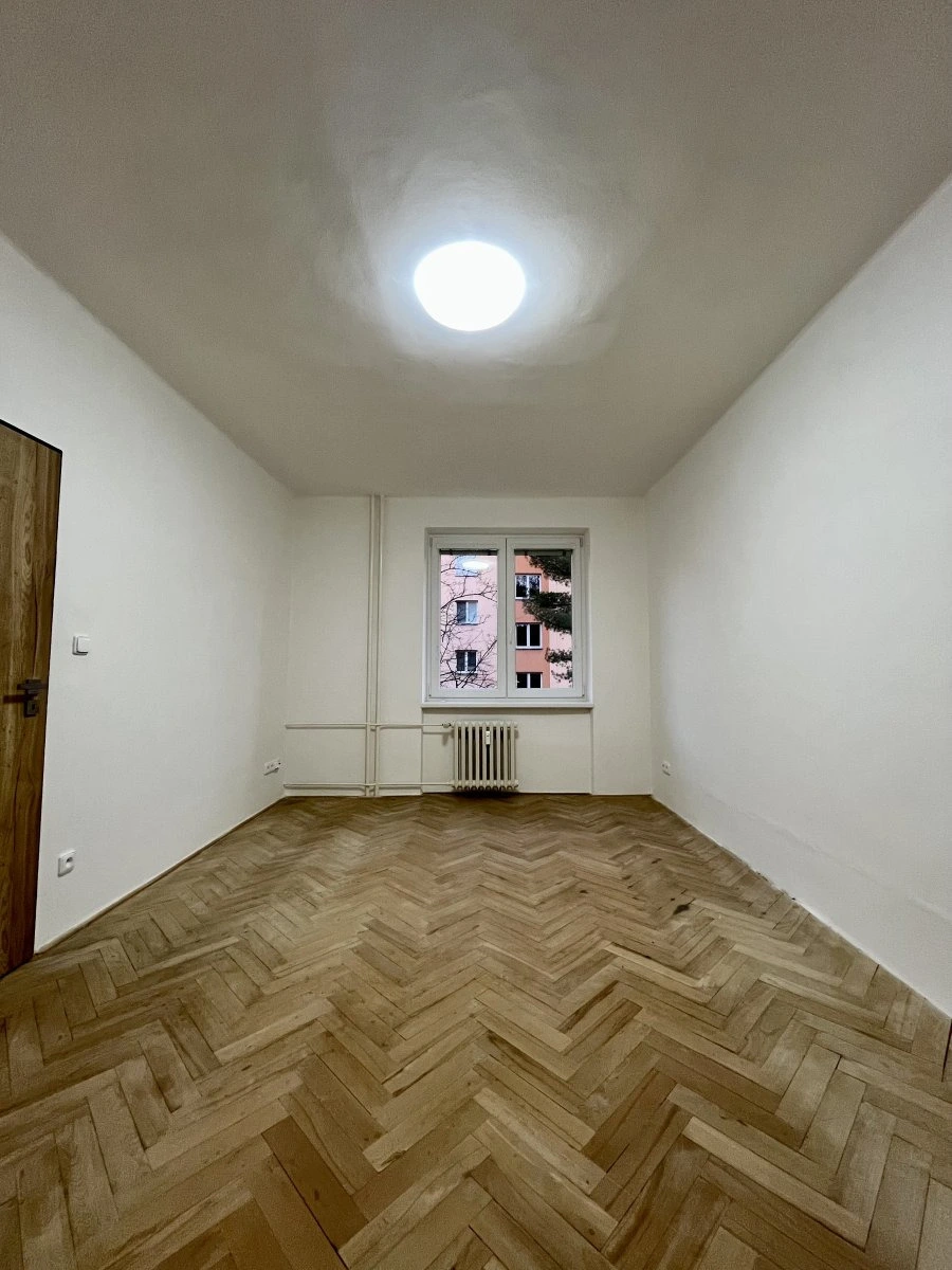 Moderně zrekonstruovaný byt nabízí dva neprůchozí pokoje, do kterých vstupujeme z jednoho průchozího pokoje. Z prostorné chodby s vestvěnými šatními skříněmi se dotaneme na toaletu, která je umístěna samostatně a koupelnu, která nabízí sprchový kout a místo pro pračku a sušičku.