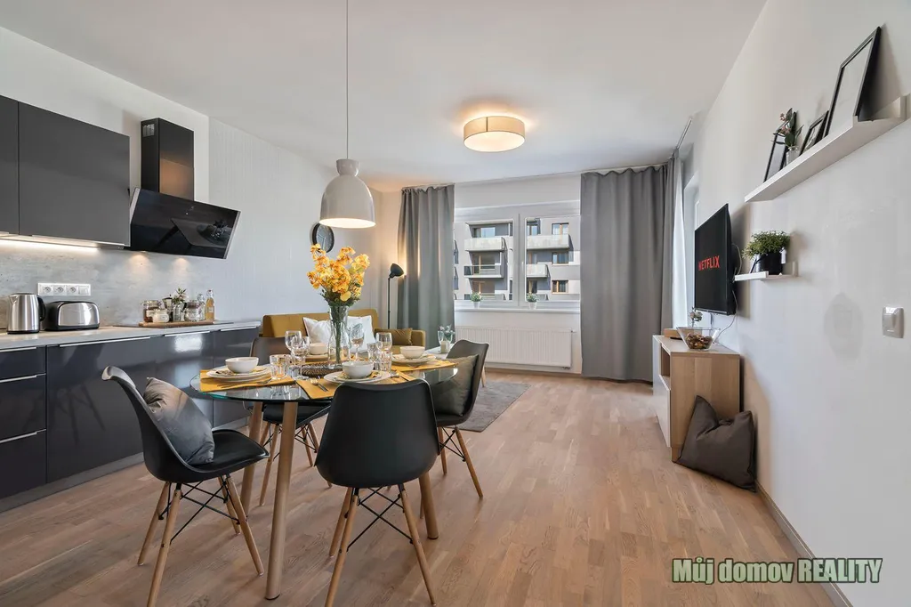 **Pronájem plně vybaveného bytu 2+kk s balkonem, parkovacím stáním a sklepem Praha 9, Hloubětín**