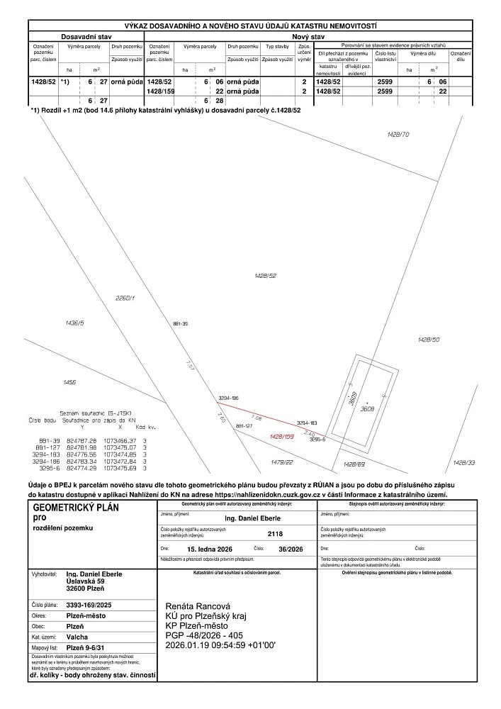 Parametry pozemku