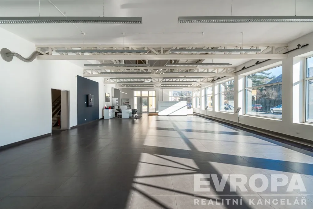 • Moderní prosklený showroom (236 m2) se zázemím, kancelářemi v patře a archivem. Ideální pro prodejnu, restauraci, klientské centrum nebo sídlo firmy.