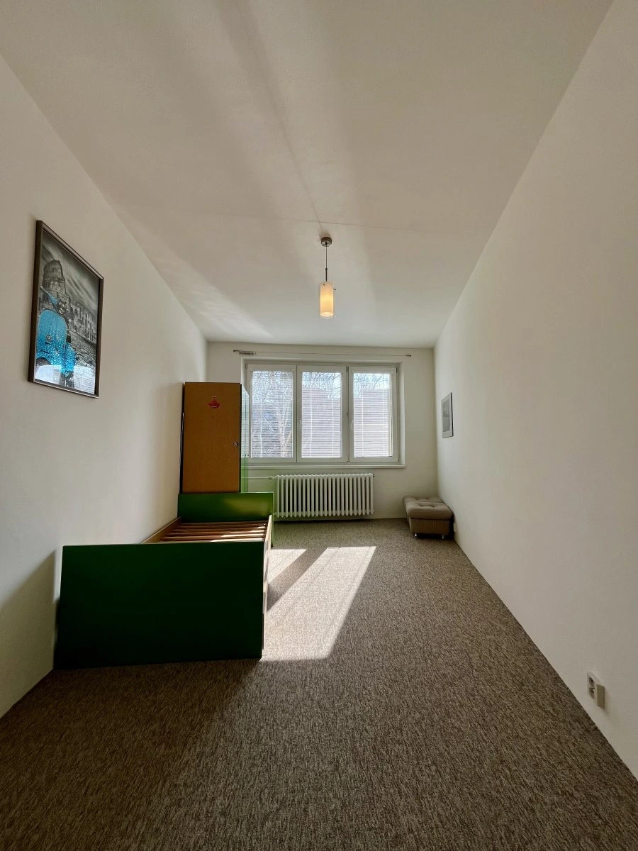 V obou pokojích jsou položeny koberce a v bytě je vymalováno.
