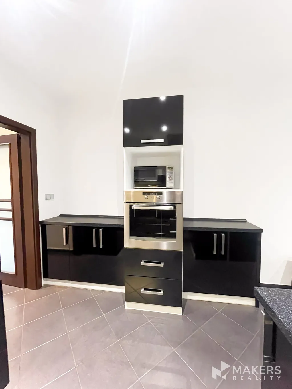 Velkou předností bytu jsou čtyři obytné místnosti orientované na obě strany domu, díky čemuž je byt příjemně světlý a prakticky dispozičně řešený. Na jihozápadní straně se nachází obývací pokoj propojený se stylovou, plně vybavenou kuchyní, která je vybavena lednici, sklokeramickou varnou deskou s digestoří, samostatnou troubou a mikrovlnnou troubou. Součástí obývacího prostoru je také rohová pohovka s televizí. Na stejné straně bytu se nachází hlavní ložnice.