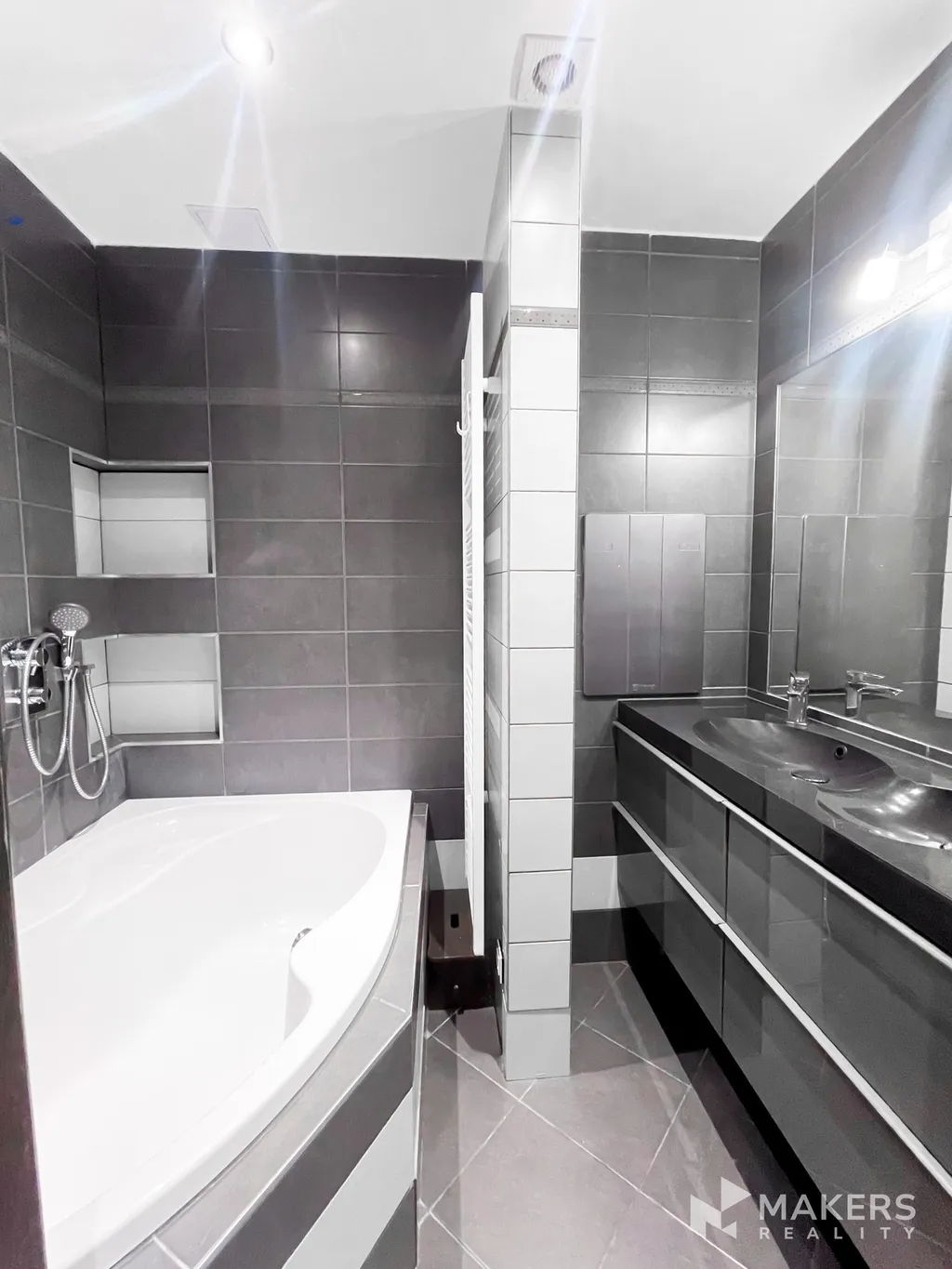 Na severovýchodní straně jsou situovány další dva pokoje – jeden sloužící jako ložnice a druhý může být ideálně využit například jako pracovna nebo domácí kancelář. Každý z pokojů je vybaven šatní skříní a nabízí dostatek úložného prostoru. Byt dále disponuje stylovou koupelnou s vanou, samostatnou toaletou a prostornou předsíní, kde se nachází další šatní skříň se zrcadlovými dveřmi.