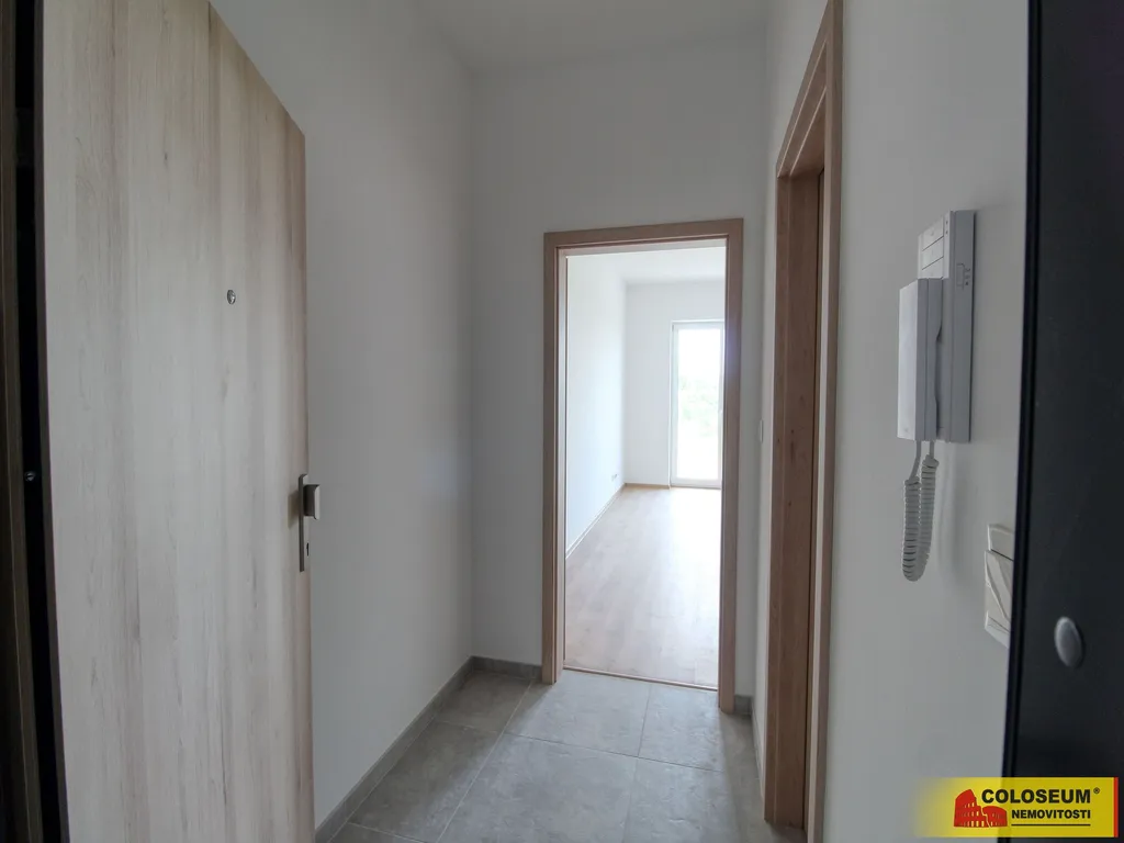 Byt se skládá z pokoje s kuchyňským koutem, koupelny s toaletou, předsíně a balkonu. Byt se pronajímá nevybavený, je osazen novou kuchyňskou linkou, sklokeramickou varnou deskou, troubou a lednicí. K bytu je možné pronajmou parkovací stání v podzemní garáži, vlastní venkovní stání a sklepní kóji.