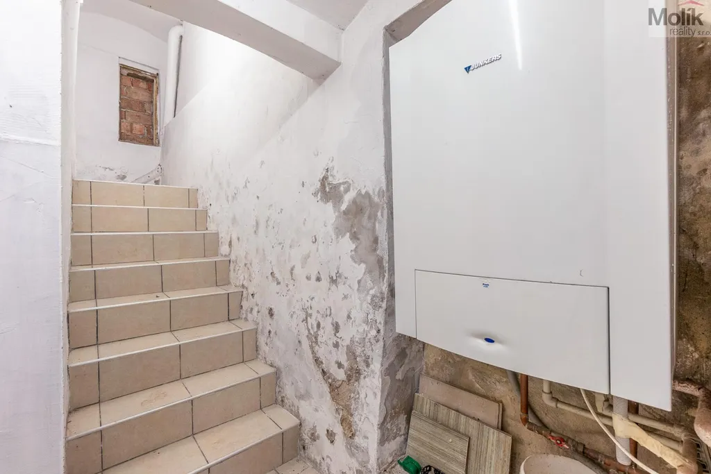 Dům je z části podsklepený a nabízí také půdní prostor vhodný k využití například jako pracovna, ateliér či úložný prostor. V mezi patře se také nachází úložný prostor. Vytápění domu zajišťuje plynový kotel, který je umístěný ve sklepě.